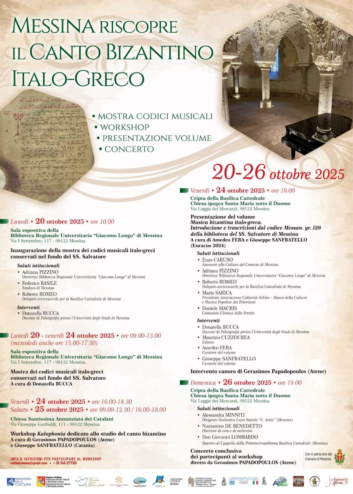 Segnaliamo al pubblico della Filarmonica Laudamo le manifestazioni organizzate a Messina dal 20 al 26 ottobre per valorizzare la preziosissima raccolta di antichi codici liturgici con notazione musicale conservata nella Biblioteca Regionale di Messina, e per avvicinare al canto bizantino con un workshop. Tutti gli eventi sono a ingresso libero.