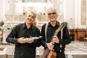 Nato nel 2017, il duo formato da Gianfranco Brundo e Nicola Oteri ha all’attivo più di 50 concerti in Italia e all’estero e presenta un repertorio originale, interamente scritto per questa formazione. Il concerto alla Filarmonica Laudamo, ispirato dal lavoro discografico Viaggio per il Mediterraneo, comprende composizioni originali per sax e chitarra decacorde scritte per il duo Brundo/Oteri ed è frutto del lavoro di ricerca sul repertorio per questi due strumenti agli antipodi: la chitarra, uno degli strumenti più antichi e dal suono flebile, e il sax, primo strumento dell’era moderna, che proprio sulla robustezza del timbro e la potenza del suono basò la sua fortuna. Gianfranco Brundo, vincitore di prestigiosi concorsi, è docente di sassofono al Conservatorio di Napoli. Collabora con