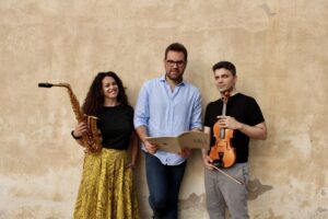 Il Trio Choré, caratterizzato dall’organico atipico di sassofono, violino e fisarmonica, è uno spazio di ricerca sonora, un incontro tra mondi diversi: tra danza e suono, tra memoria e invenzione. Il trio presenta un progetto che rielabora, in chiave cameristica, una selezione di musiche scritte per la danza: non solo per il balletto “classico” del primo Novecento di Stravinskij, Prokof’ev e Chačaturjan, ma anche musiche tradizionali del repertorio coreutico che, reinterpretate con nuove sonorità, acquisiscono una veste timbrica inedita e originale. Il nome del trio viene dalla parola greca “chorós” che significa “danza” e anche “coro”, una parola che unisce in un unico significato la vibrazione fisica del suono, la dimensione collettiva e la ritmicità condivisa della danza. Trascrizioni, adattamenti, arrangiamenti di Alberto Di Priolo e reinvenzioni del trio restituiscono una nuova prospettiva a opere scelte con rigore e passione. Completa il concerto un brano contemporaneo scritto per il trio da Rodolfo Saraco, un’opera vibrante che rielabora ritmi arcaici calabresi e siciliani, terre d’origine dei tre interpreti.